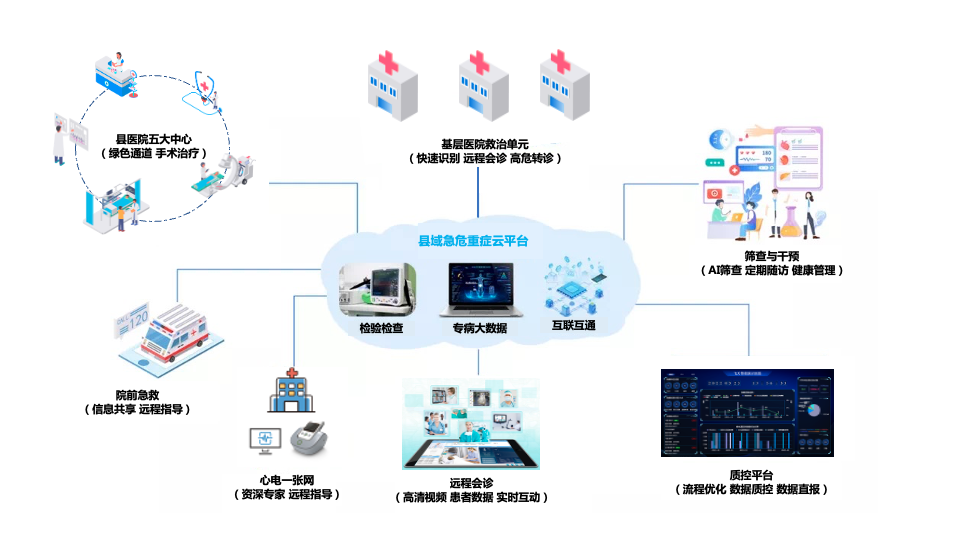 縣域醫(yī)院作為中國(guó)廣大縣域百姓看病就診的主要場(chǎng)所,承擔(dān)著我國(guó)近三分之二人口的疾病診療與健康管理重?fù)?dān)。由于急危重癥的救治時(shí)間窗較短,急危重癥患者多在縣級(jí)醫(yī)院就診,因而提升急危重癥患者的搶救能力是縣域醫(yī)院的工作重點(diǎn)!“千縣工程”縣醫(yī)院綜合能力提升工作方案(2021-2025年)》的一項(xiàng)重點(diǎn)任務(wù)就是推動(dòng)資源整合共享,發(fā)揮縣醫(yī)院“龍頭”作用。同時(shí)發(fā)揮縣域醫(yī)療中心作用,緊密依托縣醫(yī)院重點(diǎn)建設(shè)這四個(gè)“五大中心”。