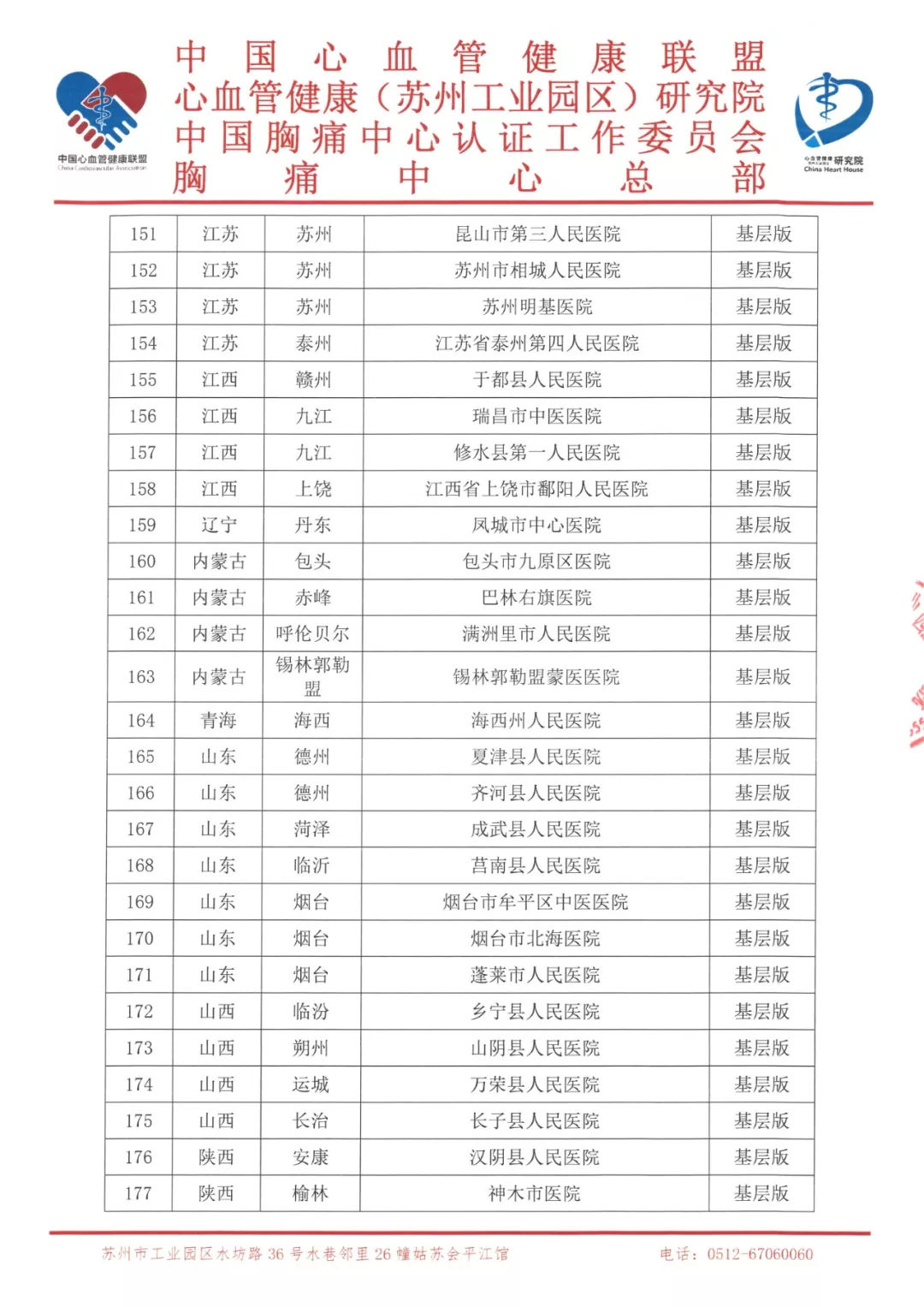 2019年第一批中國胸痛中心認(rèn)證通過單位名單