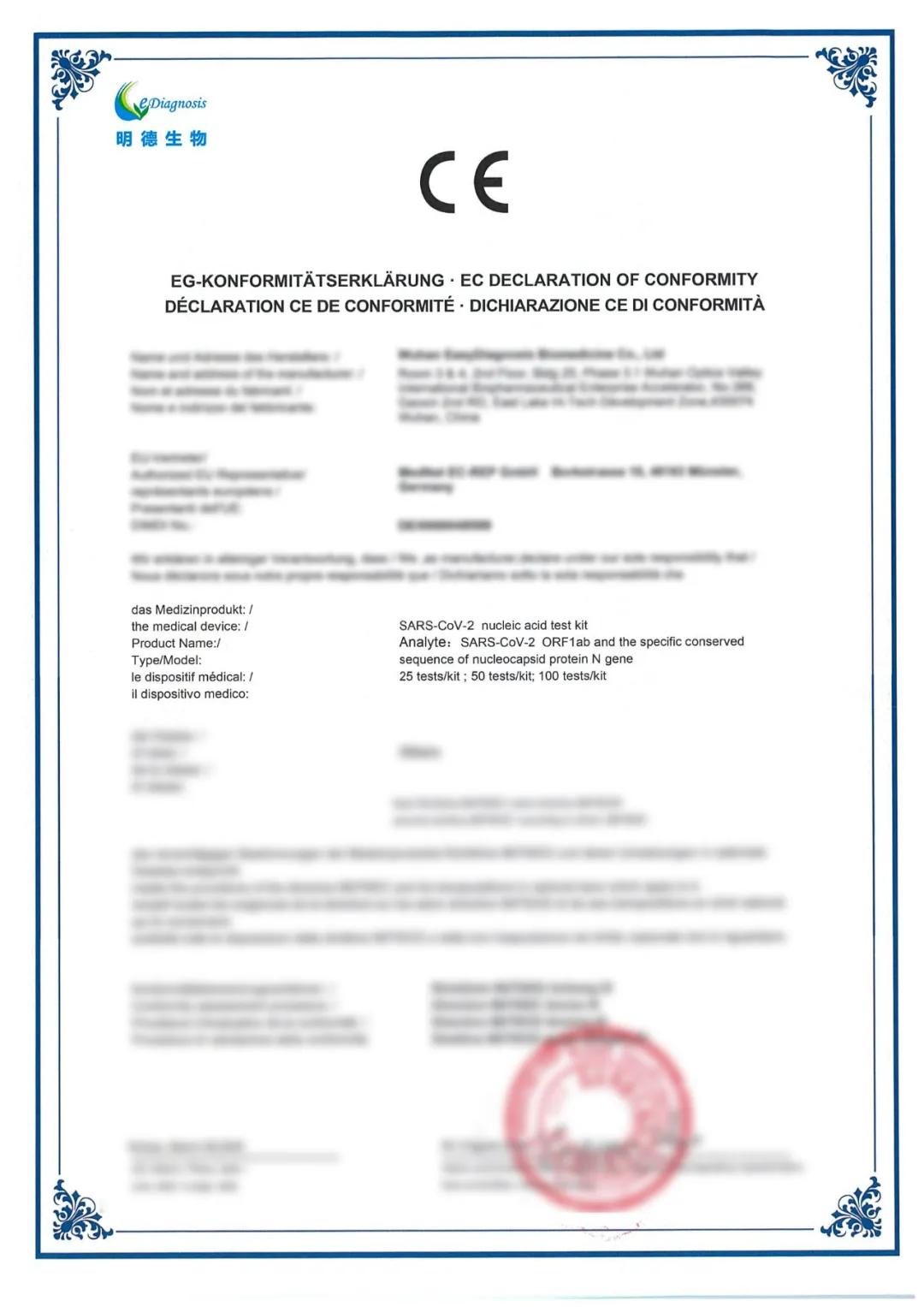 3月13日,武漢明德生物科技股份有限公司新型冠狀病毒核酸檢測試劑盒、核酸提取試劑、新型冠狀病毒IgM/IgG抗體檢測試劑盒(膠體金法)、血氣分析儀、血氣檢測試劑盒、高敏C反應(yīng)蛋白(hs-CRP)檢測試劑盒共6個產(chǎn)品獲得歐盟CE準入,擁有進入歐盟市場資格。