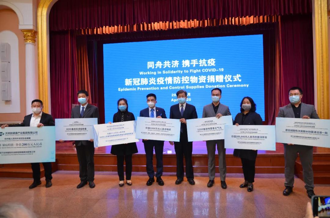 捐贈儀式上,中國人民對外友好協(xié)會感謝明德生物為摩洛哥抗議醫(yī)療物資提供的大力支持,當(dāng)場頒發(fā)捐贈證書并合影留念。