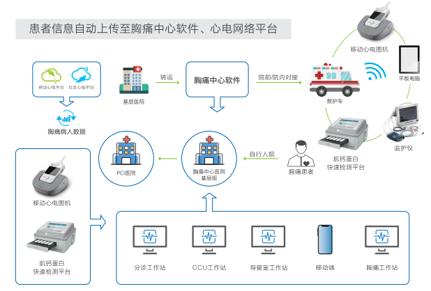 明德生物提供胸痛中心軟硬件一體化服務(wù),胸痛中心軟件為胸痛中心建設(shè)中高度集成化軟件系統(tǒng),流程軟件集合了所有胸痛患者治療過程中的標(biāo)準(zhǔn)動作,且硬件數(shù)據(jù)自動接入,控制了胸痛流程的相關(guān)數(shù)據(jù)的產(chǎn)生過程, 實現(xiàn)了數(shù)據(jù)的自動采集以及審核過程的數(shù)據(jù)溯源、避免了數(shù)據(jù)造假以及丟失的情況,并可進行數(shù)據(jù)的實時分析以及質(zhì)量管理。
