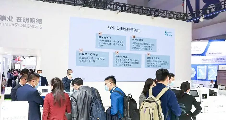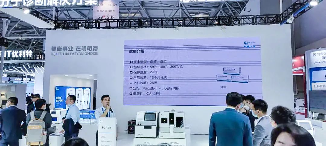 展臺現(xiàn)場,明德生物開展了產(chǎn)品課堂,對小型全自動化學發(fā)光平臺CP800、PT1000血氣分析儀、分子診斷整體解決方案、急危重癥整體解決方案做了重點推介!