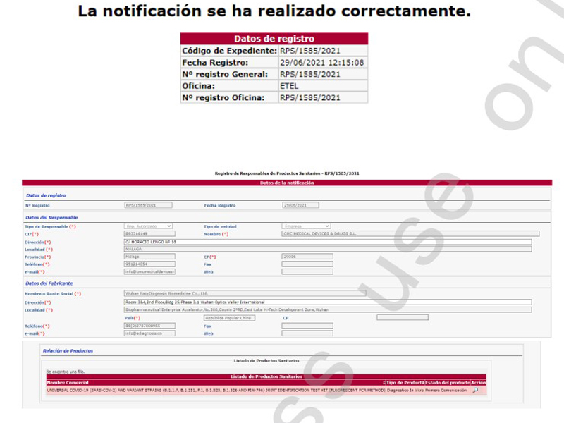 △明德新冠病毒通用型及變異株鑒別聯(lián)合檢測試劑盒歐盟注冊證明