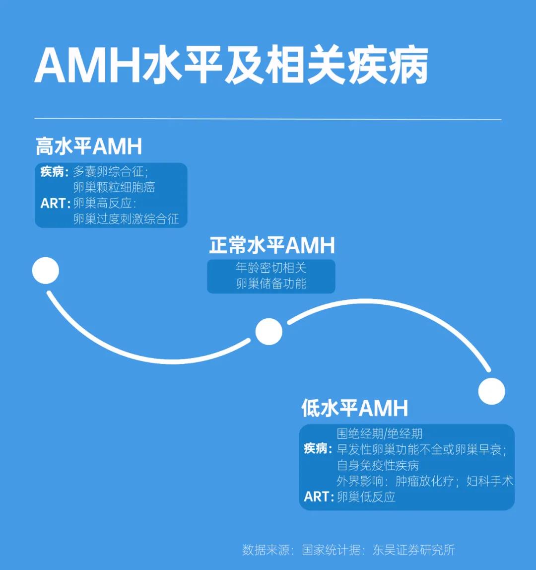 抗繆勒氏管激素(AMH)相較于傳統(tǒng)的促卵泡生成素(FSH)、雌二醇(E2)、促黃體生成激 素(LH)等檢測項目,具有特異性更強、受女性月經(jīng)周期與避孕藥物影響更小等優(yōu)勢,是卵巢儲備功能預測的優(yōu)選指標,目前已成為大中型醫(yī)療機構(gòu)主流檢測項目之一。