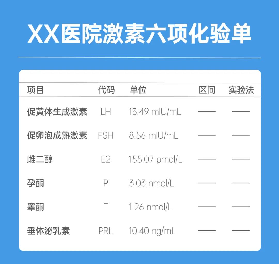 性激素是女性常規(guī)的生殖系統(tǒng)檢查。通過測定性激素水平來了解女性內(nèi)分泌功能和輔助診斷內(nèi)分泌失調(diào)相關(guān)的疾病。常用的性激素六項即促卵泡生長激素(FSH)、促黃體生成激素(LH)、雌二醇(E2)、孕酮(P)、睪酮(T)、催乳激素(PRL)。