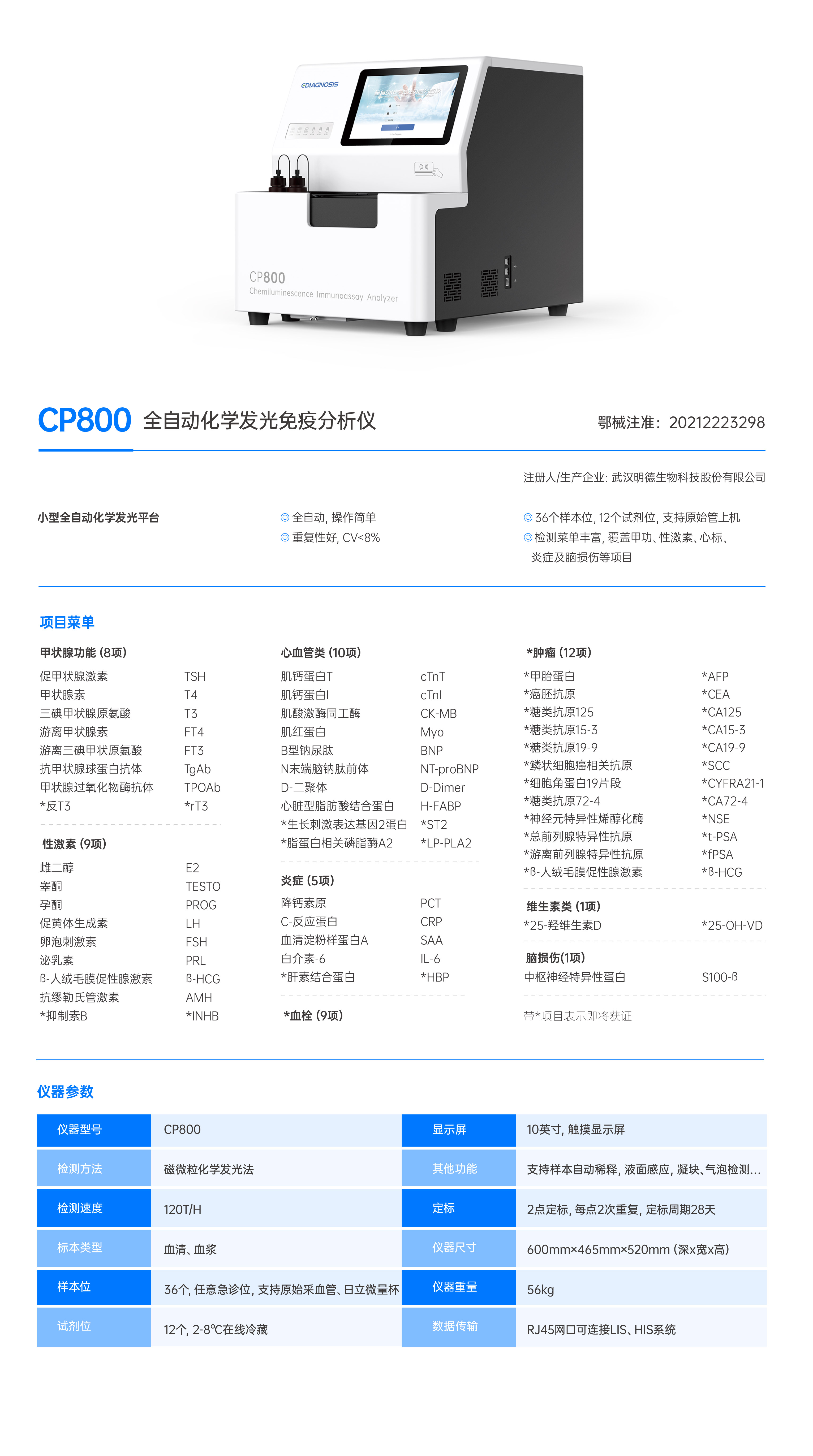 首頁  / 產品中心  / 化學發(fā)光  / CP800 全自動化學發(fā)光免疫分析儀