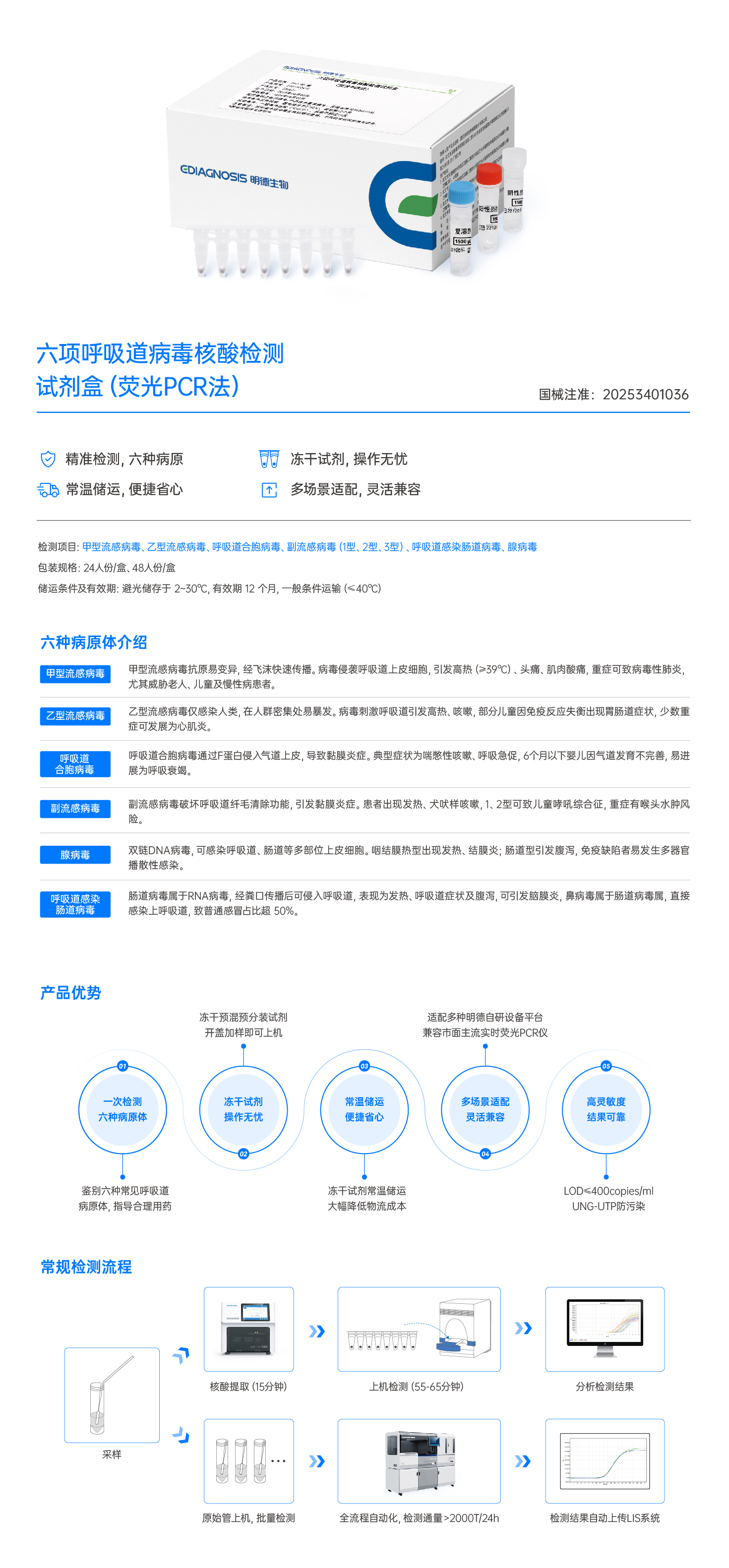 六項(xiàng)呼吸道病毒核酸檢測(cè)試劑盒(熒光 PCR 法)